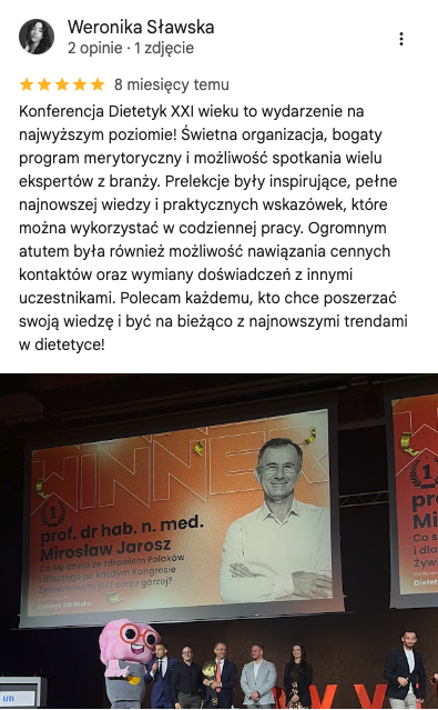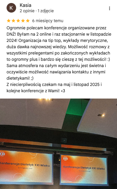 Konferencja Dietetyk XXI wieku, w której miałam okazję wziąć udział stacjonarny w Łodzi. Była to świetna okazja, aby poznać innych specjalistów dietetyki, ale również poszerzyć swoją wiedzę, poznać najnowsze badania i trendy w dietetyce.