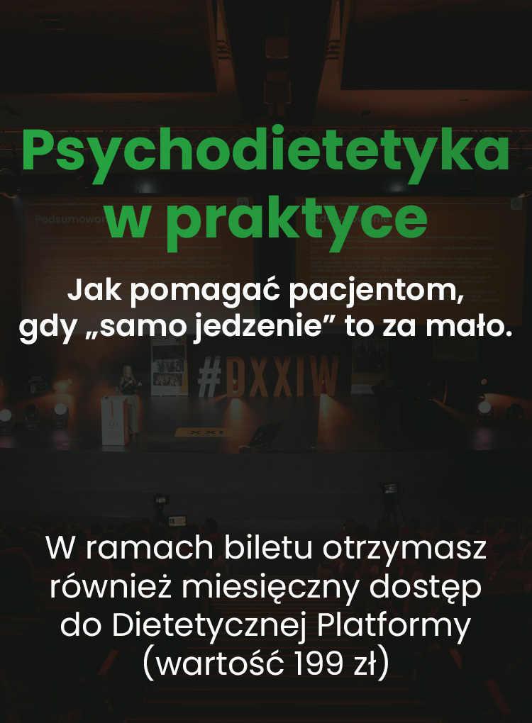 W ramach biletu otrzymasz również miesięczny dostęp do Dietetycznej Platformy (wartość 199 zł)